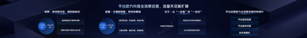 于廠商而言,在用戶規(guī)模化增長、競爭愈發(fā)激烈的背景下,過往單一化的買量行為,在一定發(fā)展階段后,會不可避免地走向獲客瓶頸,難以有效轉化過去沒有游戲經(jīng)驗的新用戶?;诖?,巨量引擎為游戲廠商提供了關鍵陣地,通過促進內容和平臺各場景的深度融合,讓包括短視頻、直播、社交在內的所有抖音內容生態(tài)和場景都能用于觸達用戶,從而幫助廠商打開流量拓展天花板。