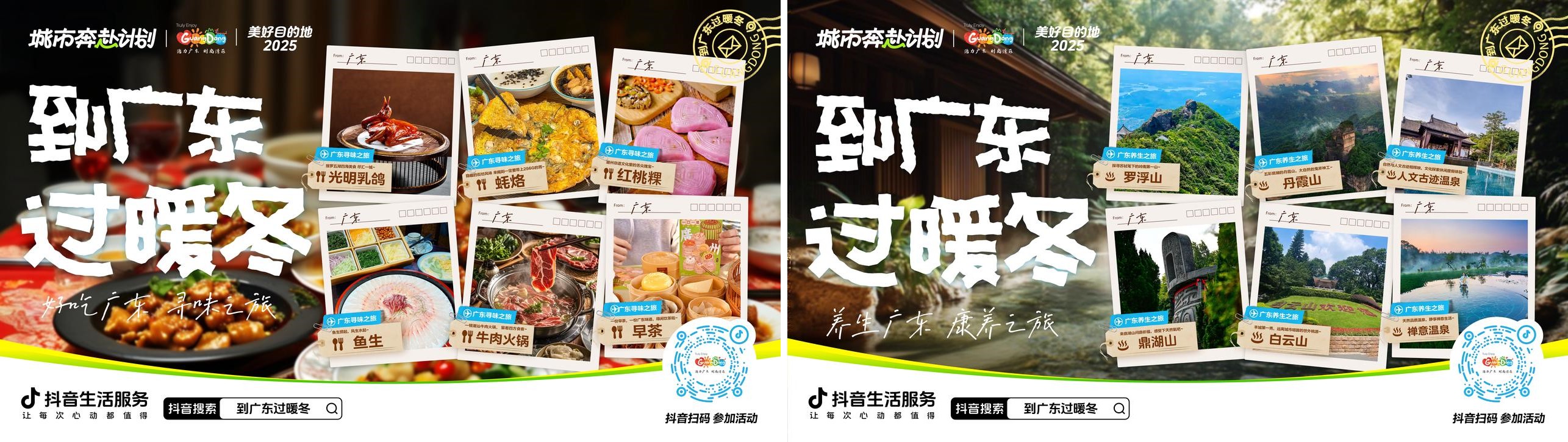 這一次,為了讓更多用戶沉浸式感受嶺南風(fēng)韻,滿足不同人的暖冬旅行期待。廣東文旅聯(lián)合抖音生活服務(wù),整合廣東地區(qū)21地市的豐富資源,融合美食、溫泉、海景、非遺等元素,推出了“人文廣東”“濱海廣東”“好吃廣東”“養(yǎng)生廣東”共4個(gè)不同主題的暖冬之旅路線,讓來到廣東的人們,隨時(shí)隨地都能輕松開逛,找到在廣東過暖冬的快樂點(diǎn):