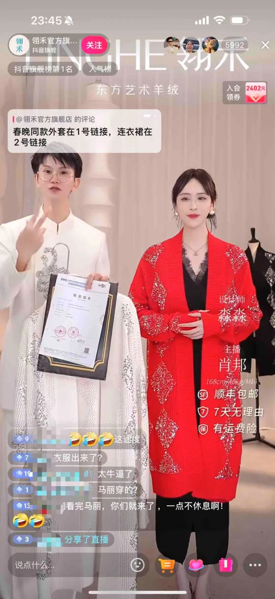 馬麗同款紅色毛衣開衫便是其中一個代表。隨著春晚小品《金龜婿》的播出,網(wǎng)友立刻在抖音電商快速搜索,試圖找到這件紅火喜慶的開衫當(dāng)作送給媽媽的新年賀禮。