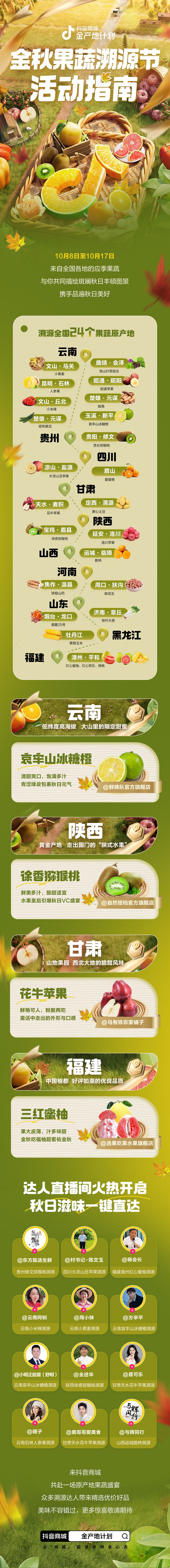 10月8日-10月17日,抖音商城金產(chǎn)地計劃推出「金秋果蔬溯源節(jié)」," />