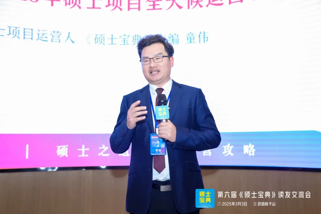 讀友交流搭臺×項目合作唱戲。本屆活動的重頭戲就是《碩士寶典》主編童偉的主題分享《春風(fēng)有信:2025年碩士項目運(yùn)營全天候攻略》,在2個半小時的分享中,對“全碩士項目”中的考研內(nèi)訓(xùn)班、保研內(nèi)訓(xùn)班、管理類聯(lián)考火箭班、涉外碩士申請指導(dǎo)、考研復(fù)試指導(dǎo)、考研調(diào)劑指導(dǎo)、同等學(xué)力碩士、未來杰青學(xué)術(shù)背景提升計劃等進(jìn)行了“重點梯隊分類”,分別從前端的市場營銷、中端的咨詢簽約、后端的交付拓展進(jìn)行了詳解。