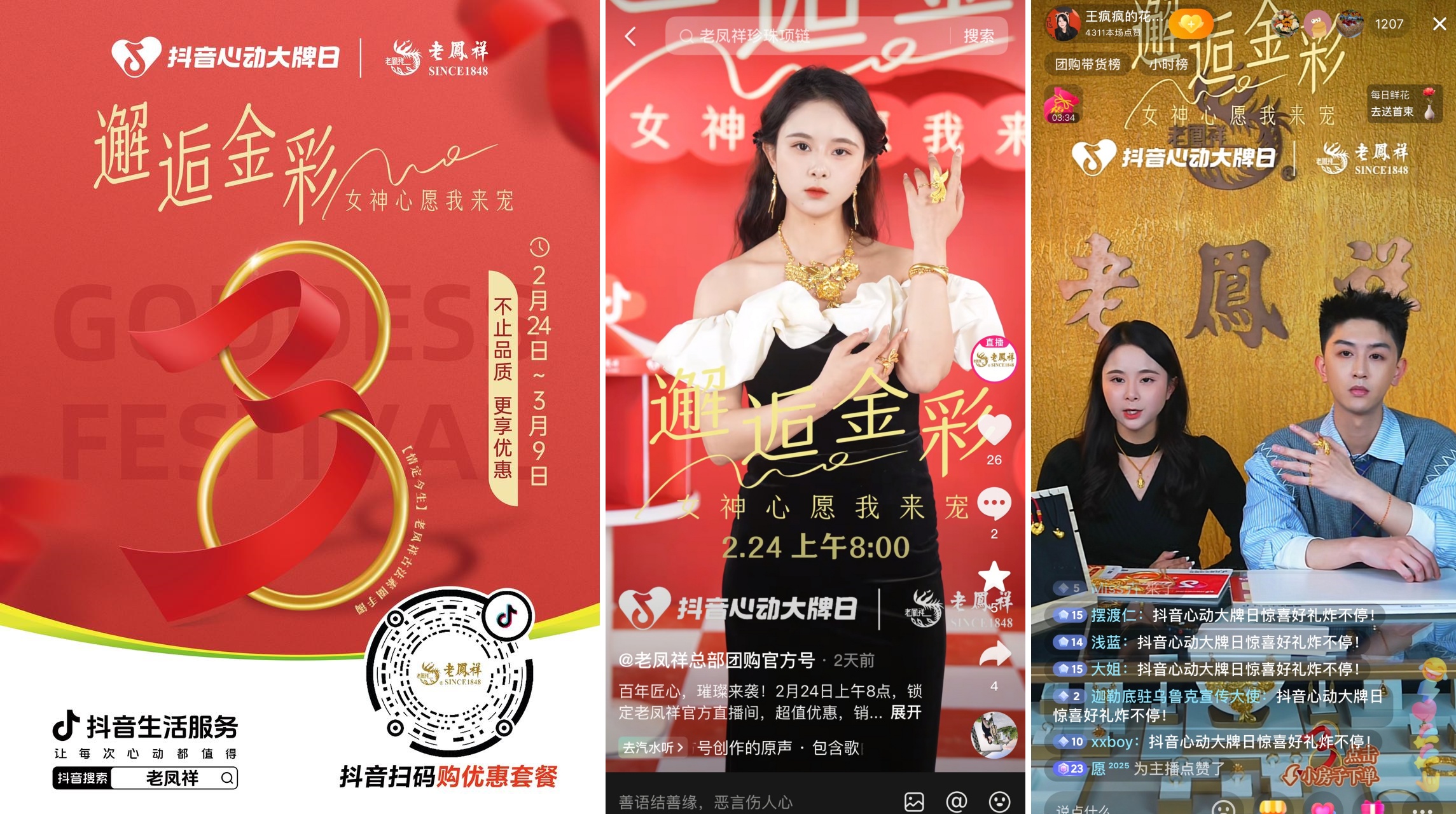 ,值此38婦女節(jié)臨近之時(shí),于2月24日至3月9日獨(dú)家呈獻(xiàn)“邂逅金彩,女神心愿我來寵”主題活動(dòng),攜手「抖音心動(dòng)大牌日」,為所有女神獻(xiàn)上節(jié)日專屬的“金”喜好禮。本次活動(dòng)特別推出“38女神節(jié)姐妹淘1+1”企劃,創(chuàng)新性地組合兩款手串進(jìn)行團(tuán)購(gòu)銷售,主打讓美麗與友誼同行。