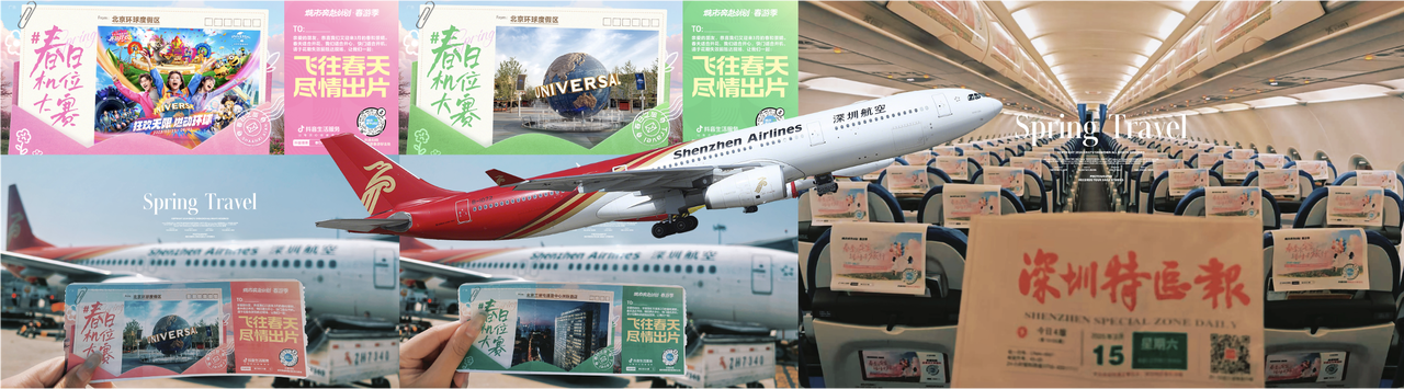 跨界+資源整合,玩轉(zhuǎn)共贏生態(tài) 抖音生活服務(wù)「城市奔赴計(jì)劃·春游季」充分整合平臺(tái)資源,搞了場(chǎng)“上天入地”的跨界聯(lián)動(dòng)。 北京環(huán)球影城+深圳航空+三里屯洲際酒店達(dá)成「春日主題航班」包機(jī)合作,10萬(wàn)張品牌聯(lián)動(dòng)主題登機(jī)牌變身“春日邀請(qǐng)函”,一場(chǎng)飛行直接串聯(lián)三大品牌與10萬(wàn)+用戶互動(dòng)。乘客掃碼跳轉(zhuǎn)抖音活動(dòng)會(huì)場(chǎng),就能解鎖環(huán)球影城同款歡樂、洲際酒店度假套餐,在高空直接種草目的地。