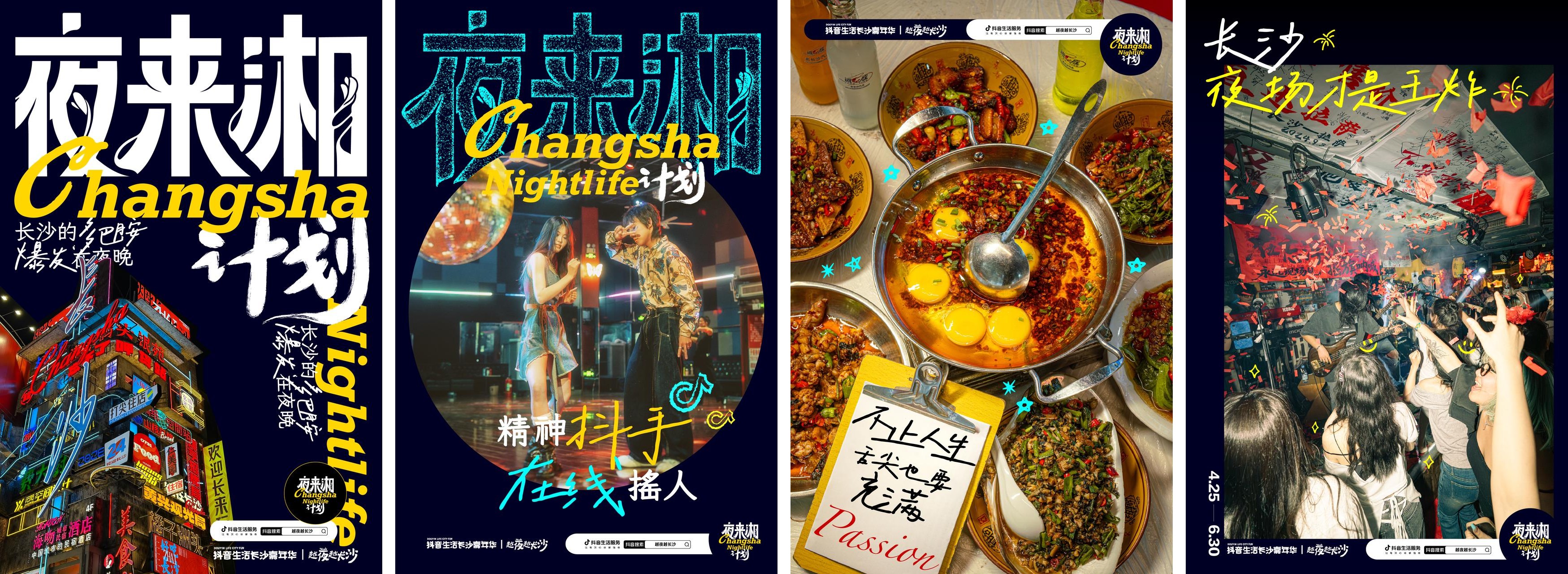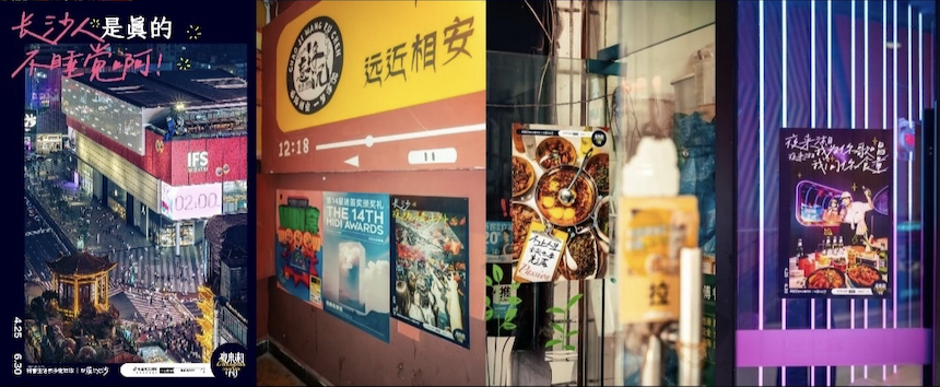 城市宣傳片里一幕幕的蒸騰煙火氣,揭開了夜長沙的狂歡圖景。夜長沙宣傳片在五一廣場循環(huán)播放,超百萬次點擊量串聯(lián)起了線上線下的觀看熱潮;22張聚焦“夜情緒”的創(chuàng)意海報,更是精準(zhǔn)戳中了城市夜行者的心:點上滿桌小龍蝦宵夜盡興舉杯、乘著觀光巴士縱情夜游湘江、與朋友組個“朋克養(yǎng)生局”躺平放松、去脫口秀劇場用爆笑段子驅(qū)散日常乏味、借酒精和音樂讓后半夜靈魂持續(xù)躁動……充滿張力的畫面搭配年輕化 slogan,以高飽和度撞色設(shè)計搶占街角商鋪與小館的視覺C位,成功實現(xiàn)百萬級曝光,精準(zhǔn)撩撥用戶打卡欲。