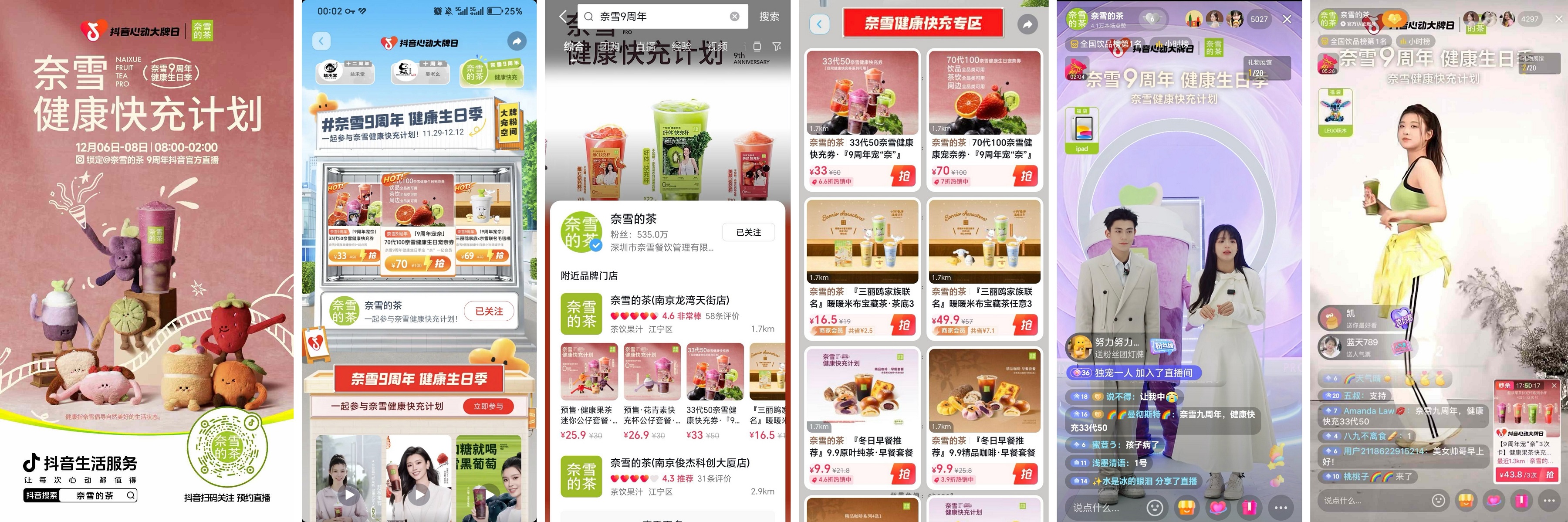 新茶飲品牌奈雪的茶,在9周年和會員粉絲破億的雙豐收之際,與「抖音心動大牌日」攜手開啟“奈雪9周年 健康生日季”抖音線上線下整合營銷,在持續(xù)努力為目標(biāo)客群打造和提供一杯好喝又健康的飲品的基礎(chǔ)上,提出健康快充計劃=超級食材+健康元素,重磅推出新品“不加糖·花青素杯”、“不加糖·纖體杯”、“不加糖·維C杯” 、“不加糖·美顏杯”等,助力消費者均衡營養(yǎng)搭配的更多健康選擇。而在12月7日奈雪的茶生日當(dāng)天,品牌更是誠意滿滿,重磅上線發(fā)布奈雪抱抱公仔,邀請粉絲品鑒不加糖蔬果茶系列之余,一起抱抱美好與健康;更在抖音日日有新會場為用戶帶來了0.01元限量嘗鮮“不加糖·花青素杯”的超級福利。