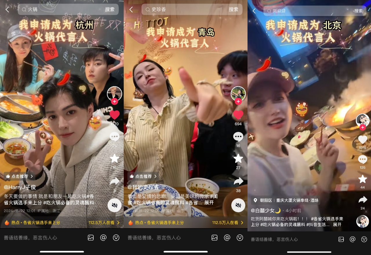 我們觀察到,在“抖音生活火鍋季”中,這一策略得到了充分的運(yùn)用和展示,抖音生活服務(wù)通過內(nèi)容,成功拓展了火鍋營銷的新邊界。