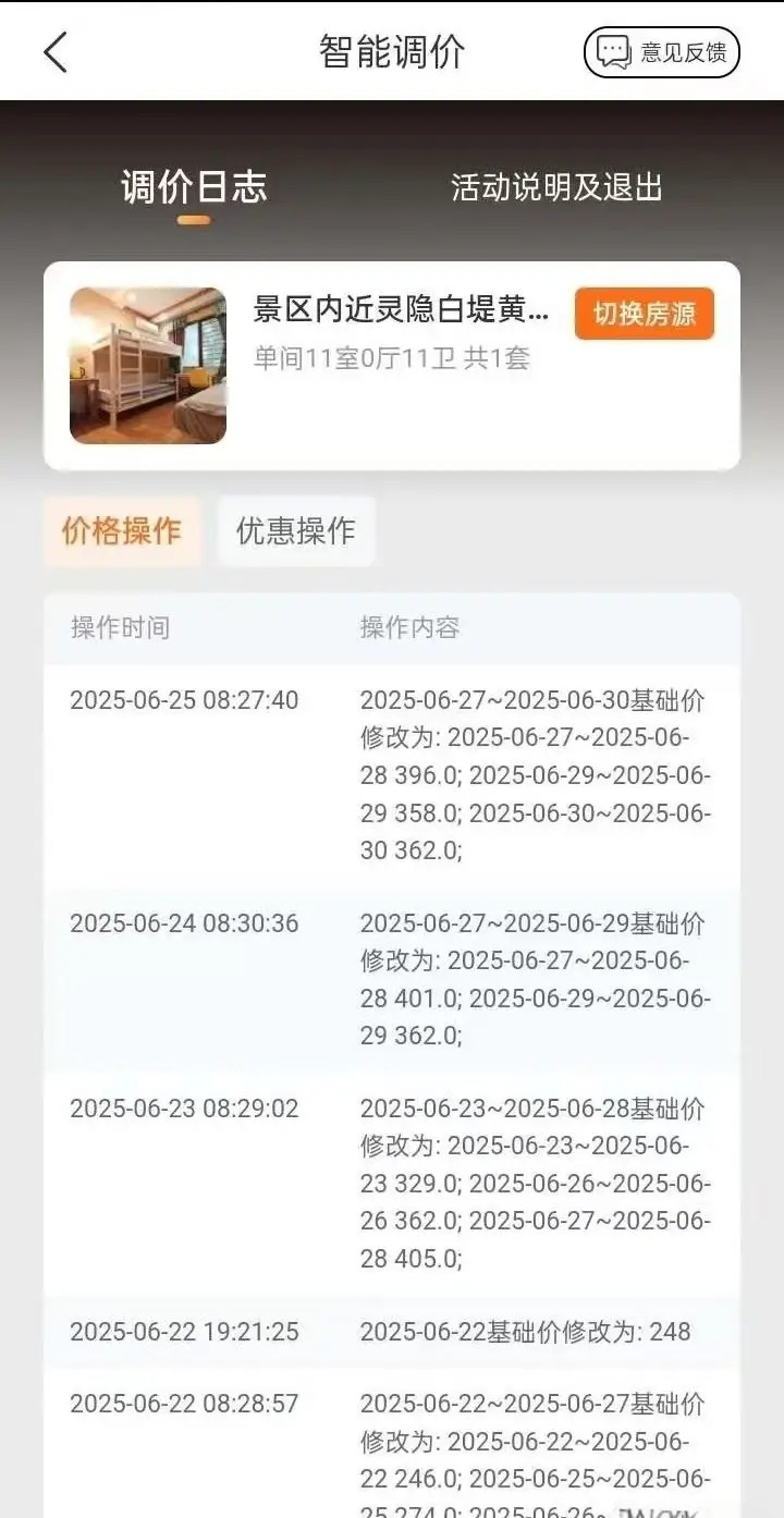 圖為攜程平臺利用“調(diào)價助手”調(diào)價的記錄