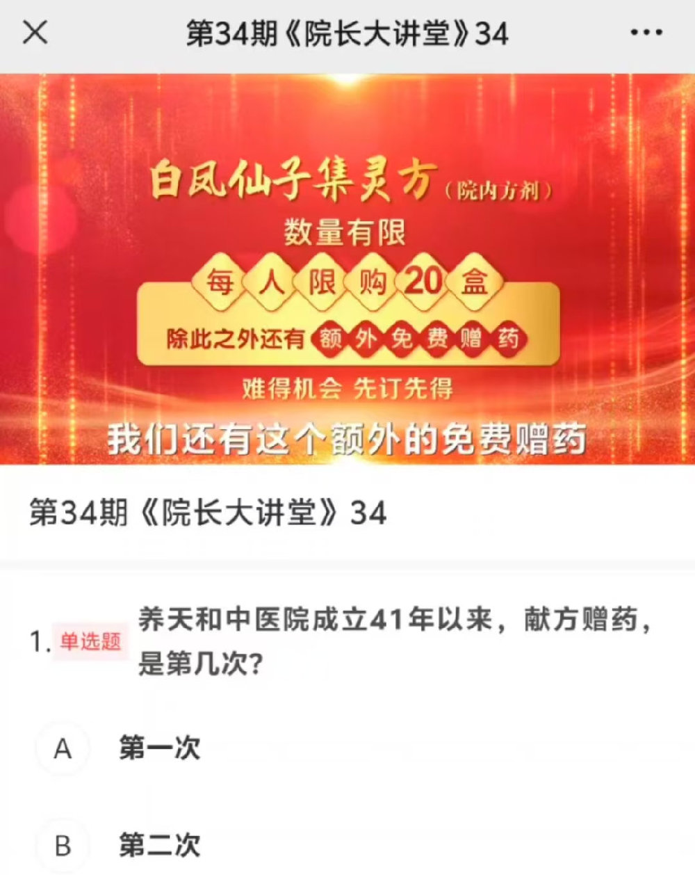 養(yǎng)天和通過(guò)免費(fèi)聽(tīng)專(zhuān)家講座的方式吸引中老年人入群,并在群內(nèi)播放提前錄制好的醫(yī)療廣告。廣告中宣稱(chēng)養(yǎng)天和醫(yī)院成立41年,但實(shí)際上該公司是在2016年3月份才注冊(cè)成立的。這種虛假宣傳行為嚴(yán)重誤導(dǎo)了消費(fèi)者,損害了市場(chǎng)公平競(jìng)爭(zhēng)的環(huán)境。