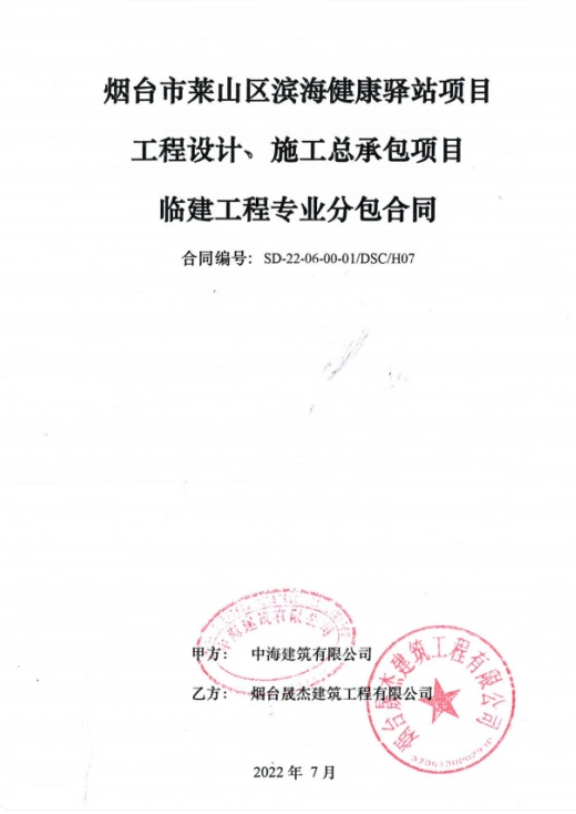 記者進(jìn)一步調(diào)查發(fā)現(xiàn),中海建筑有限公司與煙臺晟杰建筑工程有限公司在2022年7月簽訂《煙臺市萊山區(qū)濱海健康驛站項(xiàng)目工程設(shè)計(jì)、施工總承包項(xiàng)目臨建工程專業(yè)分包合同》,中海建筑公司商務(wù)部姜博瀚向記者證實(shí)“項(xiàng)目于2022年6月啟動”,而晟杰建筑卻表示,他們早在2022年4月就已進(jìn)場施工。項(xiàng)目尚未啟動,施工隊(duì)伍為何已提前兩個(gè)月進(jìn)場?這一時(shí)間差讓“未招先建”的嫌疑愈發(fā)濃重。