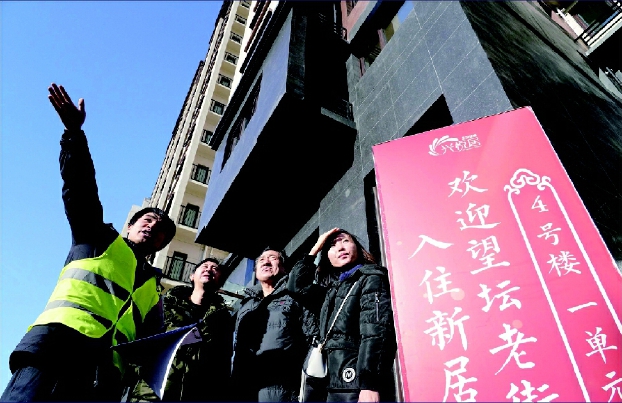 日前,位于北京市大興區(qū)瀛海鎮(zhèn)的興悅居小區(qū)開(kāi)始辦理新房入住手續(xù)。該小區(qū)是目前北京核心區(qū)體量最大的棚戶(hù)區(qū)改造項(xiàng)目——永外街道望壇項(xiàng)目的對(duì)接安置房源,2018年12月通過(guò)竣工驗(yàn)收。小區(qū)配套設(shè)施齊全,附近的地鐵線(xiàn)路本月底也將開(kāi)通。未來(lái)幾天,原望壇地區(qū)的750余戶(hù)居民將全部辦理入住手續(xù),多年的安居夢(mèng)即將圓滿(mǎn)實(shí)現(xiàn)。圖為工作人員在向住戶(hù)介紹情況。 本報(bào)記者 余波 攝