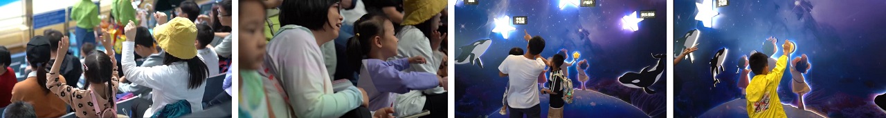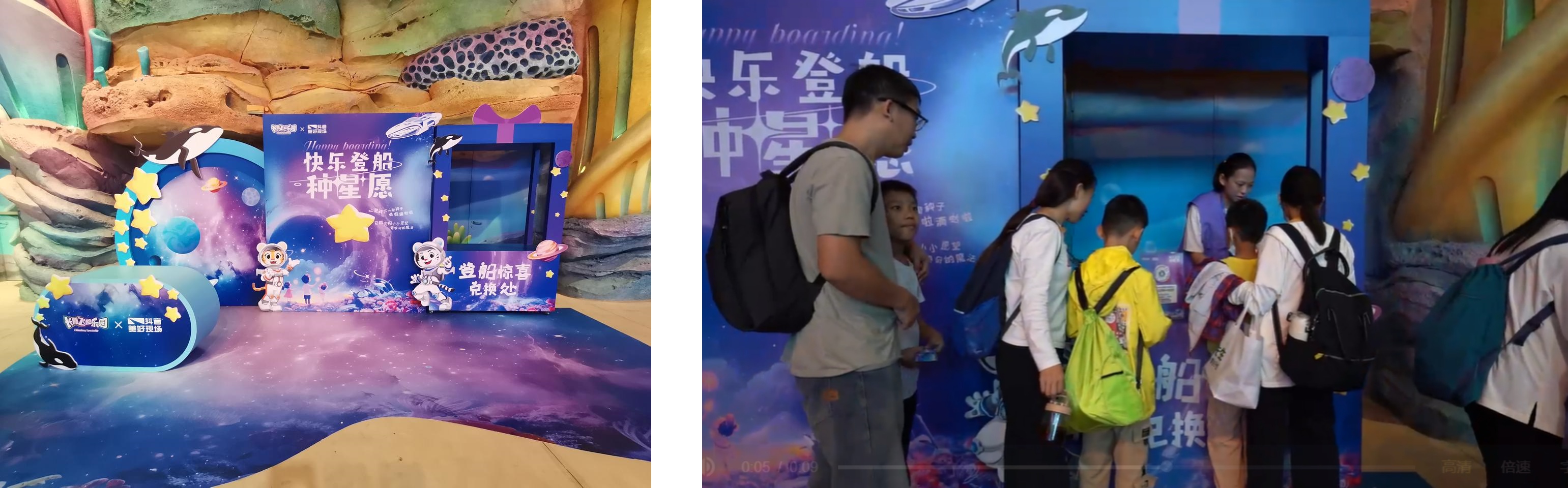 緊接著,這群小探險(xiǎn)家們滿懷憧憬的來(lái)到了長(zhǎng)隆飛船樂(lè)園二樓的「虎鯨科普劇場(chǎng)」,那里正上演著一場(chǎng)讓人目不暇接的虎鯨行為展示,孩子們仿佛置身于夢(mèng)幻的水下世界,感受虎鯨的魅力,他們興奮地舉著小手,與保育員積極互動(dòng),這場(chǎng)表演不僅讓他們大飽眼福,更在他們心中悄悄打開(kāi)了一扇學(xué)習(xí)海洋生物知識(shí)的大門(mén),埋下了一顆對(duì)海洋無(wú)限向往的種子。而活動(dòng)的高潮部分,無(wú)疑是在長(zhǎng)隆飛船樂(lè)園二樓的星愿墻前,5名幸運(yùn)的星玩家有幸為星星命名,他們滿懷儀式感地點(diǎn)亮了屬于自己的星星,并與其合影留念,將這份特別的美好瞬間封存起來(lái)。
