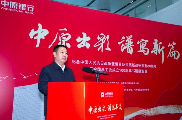 金秋十月,碩果累累。經(jīng)過數(shù)月的精心籌備,在熱烈、歡快、喜慶的氣氛中,由河南省直文聯(lián)、中原銀行聯(lián)合舉辦的“中原出彩 譜寫新篇——紀(jì)念中國人民抗日戰(zhàn)爭暨世界反法西斯戰(zhàn)爭勝利80周年、慶祝中華人民共和國成立76周年、中華全國總工會成立100周年書畫攝影展”。于10月28日(星期二)上午10點,在鄭州市鄭東新區(qū)金融島中原銀行總部大廈一樓大廳隆重開幕。
