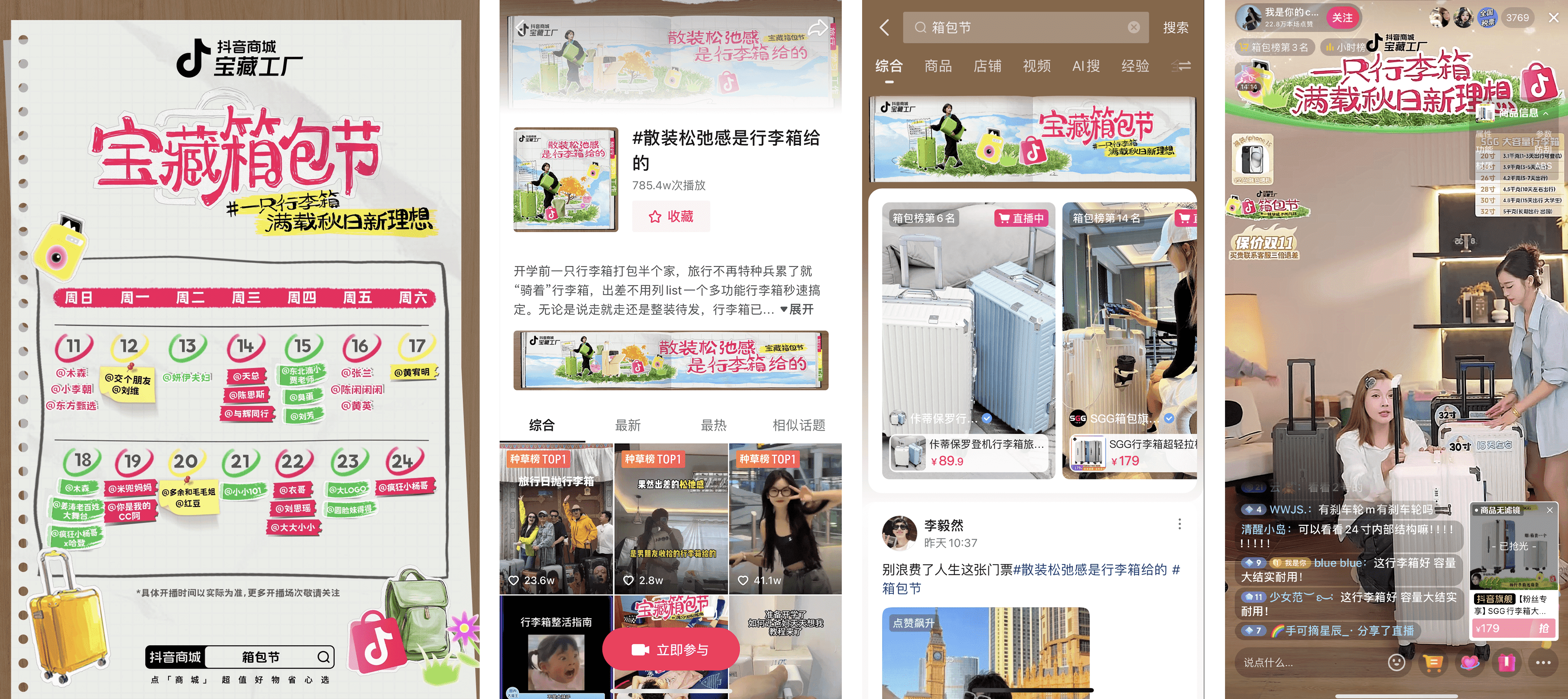 8月11日-8月24日,快來抖音商城搜索「箱包節(jié)」,用一只寶藏箱包滿載更多出行儀式感、松弛感!
