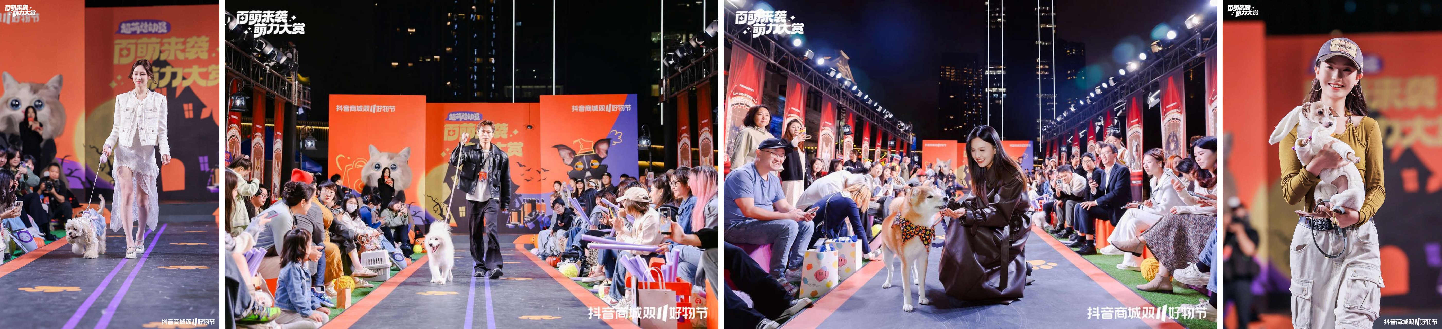 在線上推動話題、直播內(nèi)容擴散的同時,抖音電商巧妙地將熱度延伸至線下,開啟「百萌來襲•萌力大賞」線下活動,不僅撮合了眾多萌寵達(dá)人,還吸引了不同品類的寵物品牌齊聚一堂,共同打造了一場萌寵界的盛宴。
