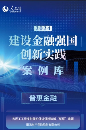 近日,由人民網(wǎng)主辦的“2024人民財經(jīng)論壇”在京舉辦,論壇同期上線了“高質(zhì)量發(fā)展”案例庫和2024建設(shè)金融強國創(chuàng)新實踐案例庫。陽光財險特色服務(wù)案例《農(nóng)民工工資支付履約保證保險破解“憂薪”難題》成功入選案例庫“普惠金融”篇章。