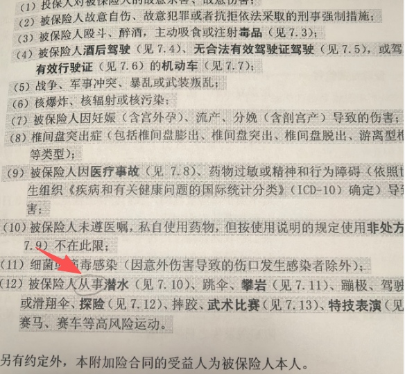圖片說(shuō)明:安先生醫(yī)療險(xiǎn)中關(guān)于滑翔傘運(yùn)動(dòng)的表述為“從事”