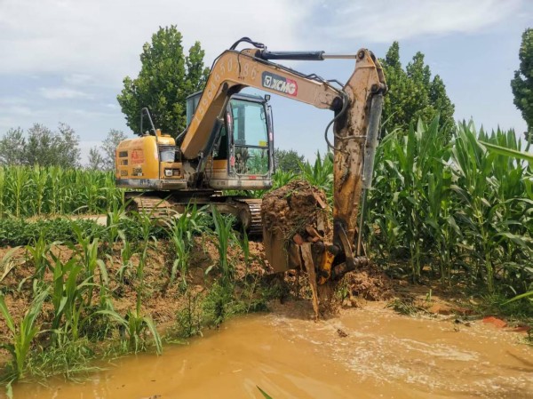 (山東菏澤中支用挖掘機(jī)進(jìn)深挖應(yīng)急排水渠)