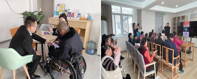 關(guān)愛特殊群體,傳遞金融溫度。河南分公司開展“暖心通道·無礙同行”專項活動,邀請殘障“客戶體驗官”測試營業(yè)網(wǎng)點無障礙設施,以此進一步優(yōu)化公司客戶服務,并推出雙軌制金融課堂,為聽障群體配備手寫板、為肢體殘障人士提供輪椅服務。江蘇分公司走進清立社區(qū)“殘疾人之家”,通過手語教學,幫助殘障人士學習維權(quán)知識。