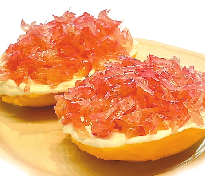 從11月初開始,固體楊枝甘露在我國浙江、福建等地的夜市攤點逐漸走紅。與傳統(tǒng)飲品楊枝甘露不同,固體楊枝甘露用凱特芒果切半做底,然后均勻地涂上干噎酸奶或奶酪椰漿的混合物,再撒上厚厚的一層西柚果肉以及西米、爆爆珠等配料,有的還會在西柚果肉上面點綴青提、藍莓或奧利奧等,不僅造型吸睛,口感層次也十分豐富,不少品牌商家快速跟風(fēng)推出類似產(chǎn)品。