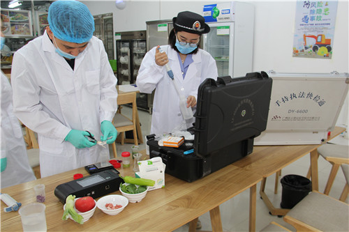 6月11日,鄭州市二七區(qū)市場監(jiān)督管理局食品檢測人員開著食品檢測車走進(jìn)了華僑城內(nèi)部食堂,對食堂購買的豬肉、小白菜、西紅柿等五種食品以及碗、盤消毒情況進(jìn)行了快速檢測。對肉、蔬菜主要是檢測農(nóng)藥、獸藥殘留情況,餐具主要是檢測潔凈度是否達(dá)標(biāo)。經(jīng)過快速檢測,所檢豬肉、蔬菜全部合格,餐具的潔凈度全部達(dá)標(biāo)。人大代表胡玉清在現(xiàn)場監(jiān)督了檢測的全過程。對華僑城職工食堂的肉菜、餐具檢測后,檢測人員又到櫻桃溝景區(qū)內(nèi)的8家餐飲店,對其購進(jìn)的7種蔬菜樣品,2個豬肉樣品進(jìn)行了現(xiàn)場檢測。經(jīng)檢測,農(nóng)藥和獸藥的殘留度全部合格。部分游客代表還走進(jìn)檢測車參觀并觀看食品檢測的過程。人大代表胡玉清說,通過現(xiàn)場觀看檢測食品的全過程后,對你們認(rèn)真的工作態(tài)度,對人民群眾的安全高度、負(fù)責(zé)的精神值得贊揚,對你們的辛勤付出也讓我深受感動。