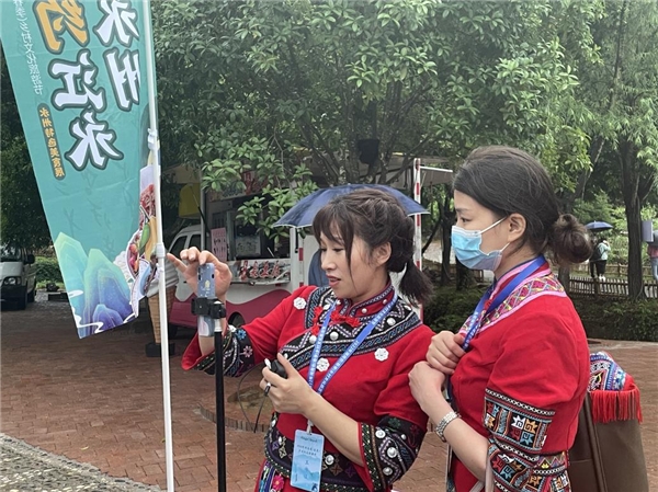 ‘鄉(xiāng)’當(dāng)有味”香約江永美食展的舉辦也是當(dāng)?shù)仉娚塘咙c工作之一,以線下活動聯(lián)動千萬級網(wǎng)紅資源,以活動孵化培育本土電商主播人才,助力打造網(wǎng)紅產(chǎn)品,打響江永農(nóng)特產(chǎn)品品牌。 活動現(xiàn)場,瑤家大菇娘、湘村四毛農(nóng)家果園等15位本地主播紛紛以美食展和勾藍瑤寨為主題拍攝短視頻。他們均是“‘e’到勾藍