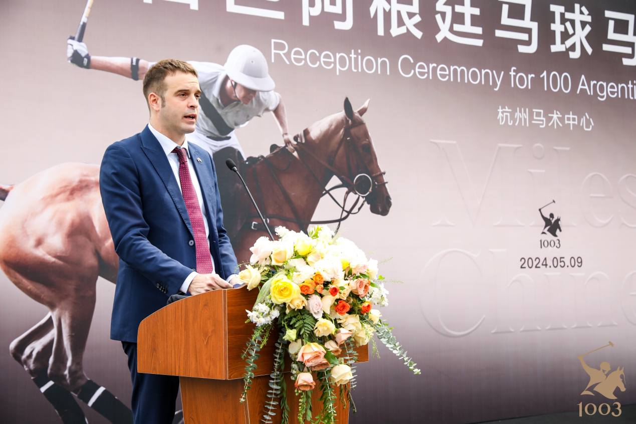 迎接儀式上,桐廬縣委書記馮晶、重慶市武隆區(qū)委書記何慶、中國馬術協(xié)會秘書長鐘國偉、阿根廷共和國駐華大使館代表孔旺燁及1003 POLO創(chuàng)始人羅斌蒞臨現(xiàn)場并發(fā)表重要致辭。重慶市文化旅游委正廳局長級干部劉旗、錢江海關關長高建明以等重要嘉賓悉數(shù)出席,共同見證中國馬球的高光時刻。