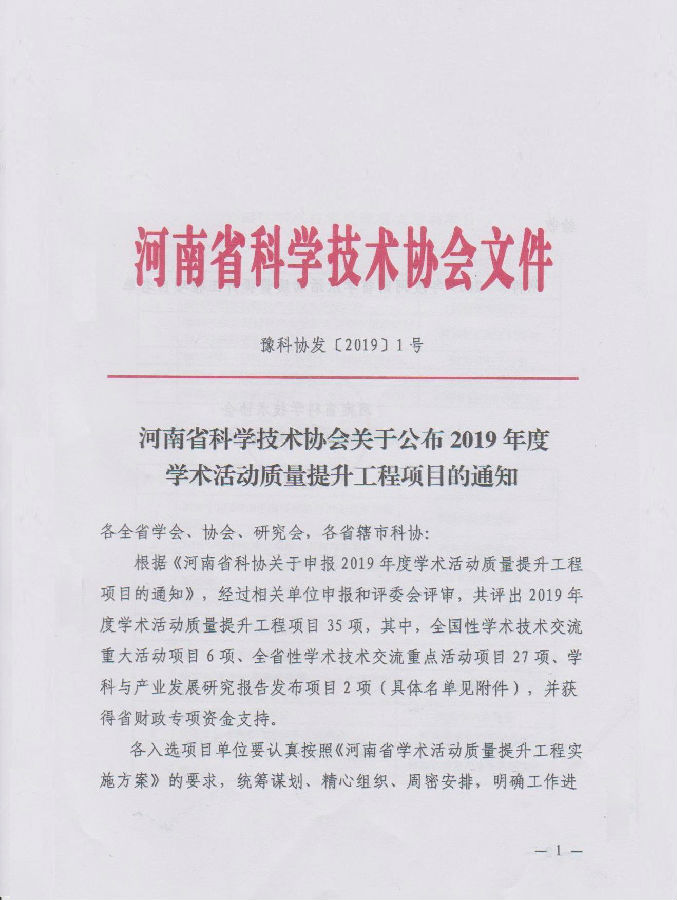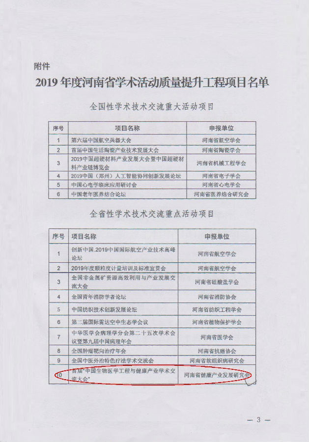 中報網(wǎng)河南訊 由河南省科學(xué)技術(shù)協(xié)會批準河南省健康產(chǎn)業(yè)發(fā)展研究會、河南省生物醫(yī)學(xué)工程學(xué)會承辦的首屆“中國生物醫(yī)學(xué)工程與健康產(chǎn)業(yè)學(xué)術(shù)交流大會”日前拉開序幕。 2019年1月10日,河南省科學(xué)技術(shù)協(xié)會《關(guān)于公布2019年度學(xué)術(shù)活動質(zhì)量提升工程項目的通知》豫科協(xié)發(fā)〔2019〕1號文件,向全省各省轄市科協(xié),全省學(xué)會、協(xié)會、研究會發(fā)出通知,批準河南省健康產(chǎn)業(yè)發(fā)展研究會、河南省生物醫(yī)學(xué)工程學(xué)會承辦首屆“中國生物醫(yī)學(xué)工程與健康產(chǎn)業(yè)學(xué)術(shù)交流大會”。