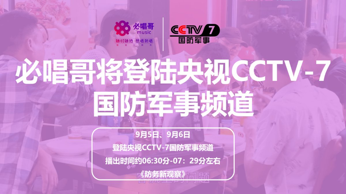 精彩不斷!熱度不止!從9月開始,必唱哥將在央視CCTV-7國防軍事頻道震撼熱播!彰顯品牌魅力的電視廣告全面爆發(fā),一路開啟電視霸屏模式!從此正式開啟必唱哥大品牌、大戰(zhàn)略、大格局的新征程!