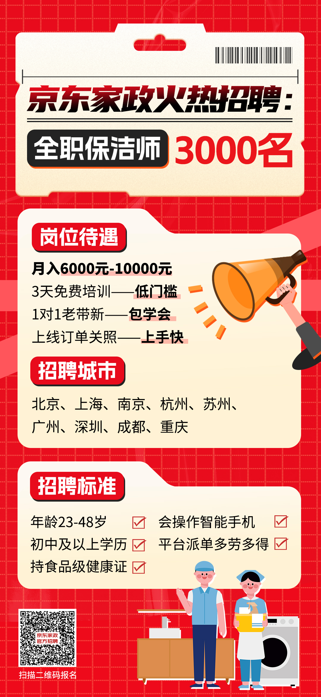 京東家政為京東集團(tuán)自營業(yè)務(wù),采用“自招-自培-自管”的經(jīng)營模式,平臺(tái)保障、接單穩(wěn)定。