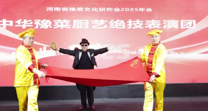 年會伊始,河南省豫菜文化研究會豫菜絕技表演團獻上了一場精彩紛呈的中華烹飪絕技表演。“腳踩氣球切肉絲”“蒙眼拉龍須面”等絕技令人嘆為觀止,將豫菜的精湛技藝和深厚底蘊展現(xiàn)得淋漓盡致,贏得現(xiàn)場觀眾陣陣掌聲。