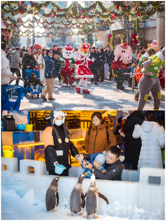 此外,深受親子游客喜愛(ài)的動(dòng)物互動(dòng)項(xiàng)目,如“酋長(zhǎng)之家”探秘、“動(dòng)物百老匯”觀賞,持續(xù)發(fā)揮其自然教育與生命關(guān)懷的獨(dú)特價(jià)值。冰雪世界的滑冰、飄雪、企鵝投喂活動(dòng)與溫泉區(qū)的水豚特色泡池,則為游客提供了多樣化的度假選擇。同時(shí),園區(qū)的工作人員通過(guò)親切互動(dòng)、派送“紅辣椒”節(jié)日禮物等方式,傳遞溫暖祝福,讓服務(wù)本身成為美好體驗(yàn)的一部分,收獲了“體驗(yàn)好”、“值得再來(lái)”、“孩子特別喜歡”的游客反饋。