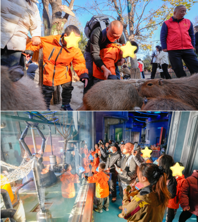 在特別設置的萌寵體驗區(qū),孩子們參觀了“猴子猩球”,了解松鼠猴、獼猴等靈長類動物的習性,還親手投喂了溫順的水豚家族,小水豚呆萌的模樣,讓孩子們興奮地合影留念。專業(yè)講解員用生動易懂的語言進行科普,讓這次互動不僅充滿樂趣,更成為一次溫暖的生命教育?;顒悠陂g,園區(qū)還為孩子們準備了精美的動物主題文創(chuàng)禮物,這份意外的驚喜讓他們愛不釋手,也為這場探索之旅增添了一份溫暖的紀念。