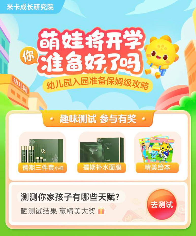 寶寶應(yīng)該幾歲上幼兒園?孩子學(xué)習(xí)規(guī)劃要從幼兒園做起嗎?送娃上幼兒園,應(yīng)該提前多久考慮?如何觀察孩子,避免幼兒園隱性傷害?……7月末尾,盛夏過半,雖然秋季開學(xué)還有月余,但家長們已經(jīng)開始焦慮起孩子入園上學(xué)的事情了! 萌寶神獸要上學(xué),爸爸媽媽先上課!近日,國民母嬰互聯(lián)網(wǎng)社區(qū)寶寶樹,精心打造《幼兒園入園準(zhǔn)備保姆級攻略》,邀請教育專家、金牌園長等專業(yè)人士,聚焦幼童擇園入學(xué)問題,開展知識科普、直播答疑、天賦趣味測試等豐富活動,幫助年輕家長充分做好寶寶入園準(zhǔn)備,完美開啟寶寶教育之旅第一步。 超八成家長有入園焦慮保姆級攻略助家長做功課 幼兒園,是寶寶學(xué)習(xí)之始、教育之基,因此家長們思慮諸多:決定寶寶入園的時機、考察適合自家的幼兒園、撫慰寶寶的分離焦慮、安排寶寶的學(xué)習(xí)規(guī)劃,乃至掌握寶寶的園內(nèi)生活。數(shù)據(jù)顯示,每年的夏末秋初,寶寶樹平臺的問答專區(qū)、話題討論區(qū)、母嬰圈子等多個場景,關(guān)于“幼兒園攻略”“幼教”“上學(xué)焦慮”之類的討論量都會呈顯著上漲趨勢。在寶寶樹社區(qū)開展的調(diào)研數(shù)據(jù)顯示,超九成的家長會提前為孩子上幼兒園做功課,八成以上的家長會因為擔(dān)心孩子無法適應(yīng)幼兒園而感到焦慮。 為此,在《幼兒園入園準(zhǔn)備保姆級攻略》專題頁,寶寶樹上線“父母最關(guān)心的五大問題”知識課堂,分享教育學(xué)者執(zhí)筆的專業(yè)內(nèi)容,供家長學(xué)習(xí)掌握;寶寶樹米卡成長研究院,特地打造“米卡入園記 | 準(zhǔn)備篇”早教課,讓寶寶提前了解熟悉幼兒園,入園不哭鬧、學(xué)習(xí)興致高。