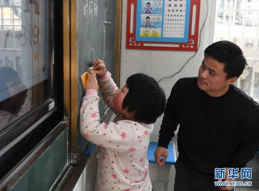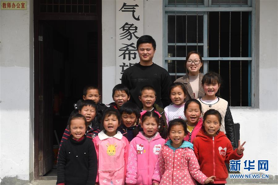 陳偉(后排左)和黃曉青(后排右)在學(xué)校與學(xué)生們合影(3月15日攝)。 在安徽省岳西縣青天鄉(xiāng)老鴨村上海氣象希望小學(xué),“90后”陳偉和妻子黃曉青扎根大山深處,用心教育山里的孩子。 陳偉和黃曉青的老家在安徽省懷寧縣小市鎮(zhèn),2017年,他們通過(guò)考試成為老鴨村上海氣象希望小學(xué)的老師,從此以校為家,吃住都在學(xué)校?,F(xiàn)在,這對(duì)夫妻教師把兩個(gè)女兒也帶在身邊,上課時(shí)由陳偉的母親幫忙照看孩子。 老鴨村上海氣象希望小學(xué)只有7名教師,夫妻倆除了自己負(fù)責(zé)的語(yǔ)文和數(shù)學(xué)主課以外,還要兼上音樂(lè)、體育等課程。陳偉告訴記者,山區(qū)小學(xué)缺少老師,他希望有更多的年輕老師到基層來(lái)。 “每天和學(xué)生們?cè)谝黄?,真的很快?lè)?!秉S曉青說(shuō)。 新華社記者 張端 攝