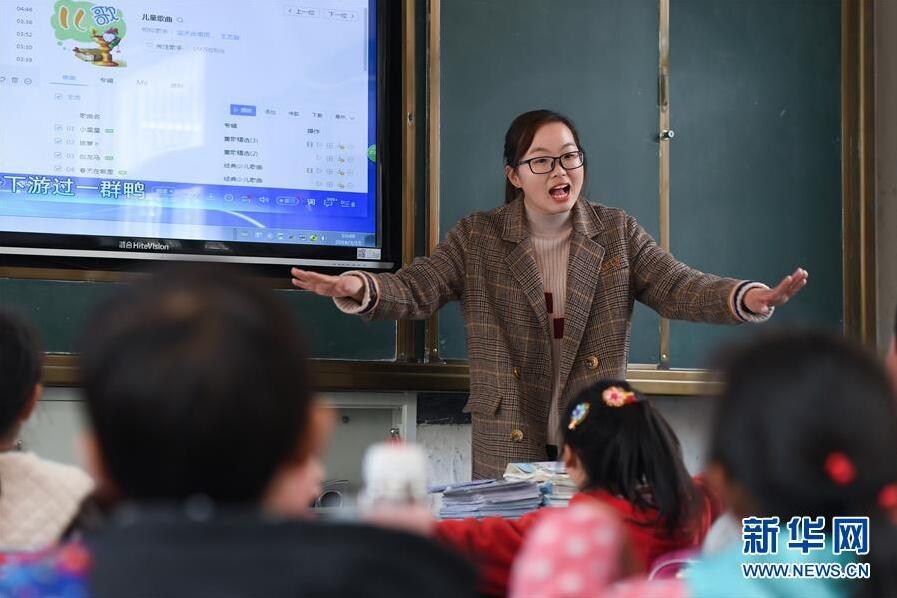 黃曉青在給學(xué)生們上音樂(lè)課(3月15日攝)。